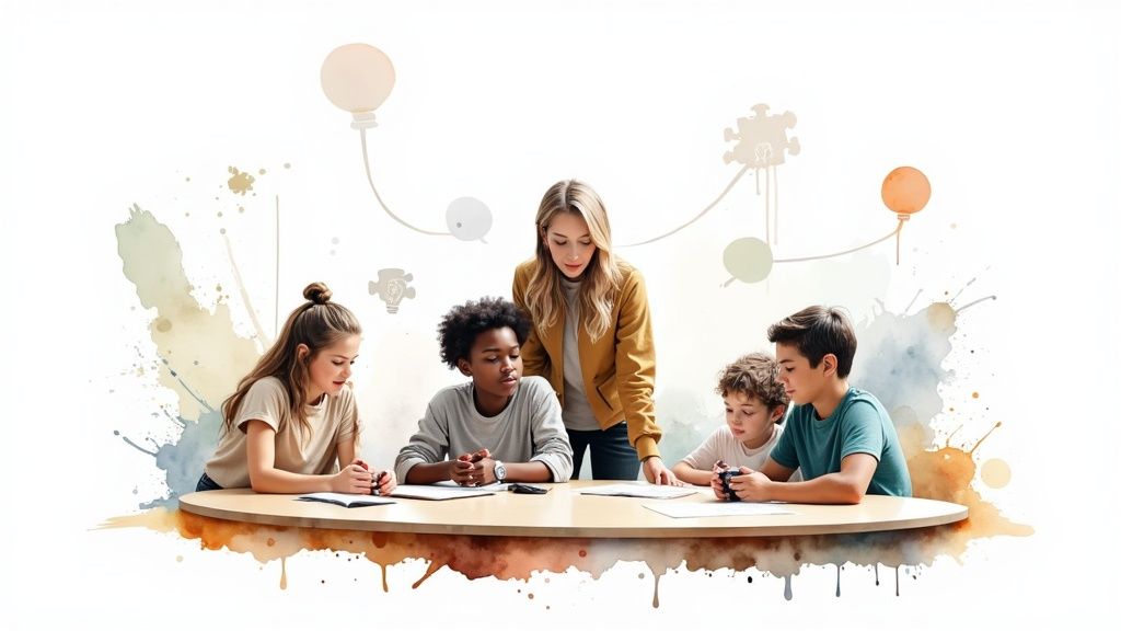 The foundation of this strategy is that students learn through social interaction and peer-to-peer explanation. Prominent educators like David and Roger Johnson have shown that well-organised collaborative environments boost academic achievement, social skills, and self-esteem. It's one of the most effective student engagement strategies for building a supportive classroom community where every member contributes.